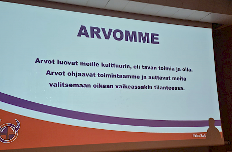 Puheenjohtajan puheenvuoron jälkeen seuratoiminta – ja valmennuspäällikkö Ilkka Saksa esitteli uuden strategiakauden myötä käyttöönotetut Viikinkien arvot, joita Saksa avasi yleisölle yksitellen, kuinka ne tulevat näkymään seuramme toiminnassa.